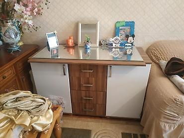 - Quruluş: ortada 4 ədəd dartqı (çekmece), hər iki tərəfdə qapılı şkaf bölmələri.