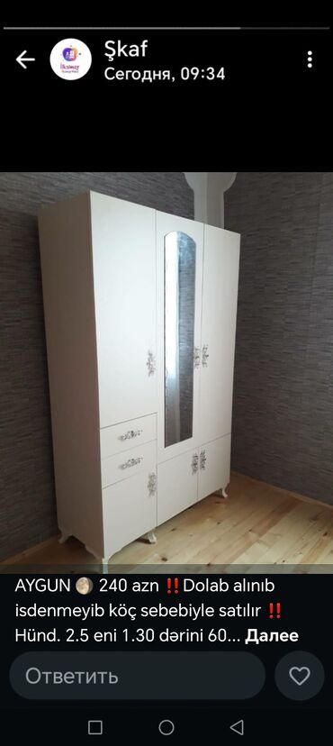4qapı dolab- 399azn 🪑 Mebeldə Zövqünüzə Uyğun Seçim! İstədiyiniz model, istədiyiniz üslub — tam sifarişlə yığılır! 📦 100% Yeni məhsullar 🇦🇿 Azərbaycan, 🇹🇷 Türkiyə, 🇧🇾 Belarus, 🇷🇺 Rusiya və 🇺🇦 Ukra...