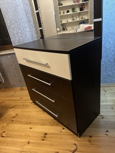 - Çekmecələr: 4 geniş siyirtmə, uzun metal tutacaqlar, yuxarı siyirtmədə bölməli təşkilatçı