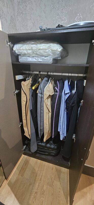 - Sağ bölmə: asılqan üçün ştanq, yuxarıda əlavə rəf (paltar, yastıq, yorğan üçün)