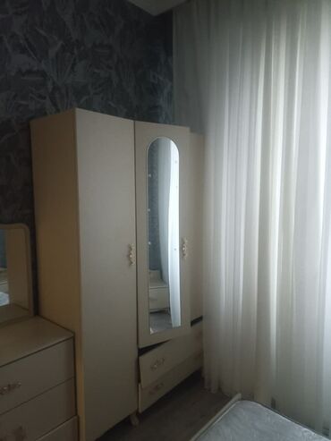 Mebel: 3 qapılı paltar şkafı güzgülü model Xüsusiyyətlər: - Ön hissədə iri ölçülü güzgü (mərkəzi qapıda) - 3 yuxarı qapı: asılqan üçün geniş bölmə və rəfli saxlama zonaları - Aşağı hissə: 2çekmece...