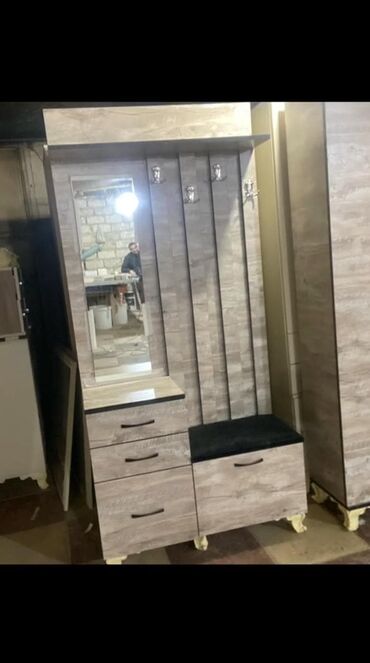 Ayaqqabı dolabı, paltar dolabı, güzgü və oturmaq üçün yer olan dəhliz mebeli dəsti. Palto və şərflər üçün asılqanları var. Kiçik əşyalar üçün çekmecesi mövcuddur. Mebel dəsti dəhlizdə əlavə saxlama...