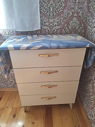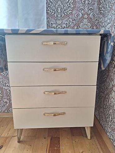 Mebel: 4 çekmecəli komod Təsvir: - Müasir və minimal dizayn - 4 geniş çekmece – geyim, tekstil və xırda əşyalar üçün rahat saxlama - Rəng variantları şəkillərdə: ağ, krem və ağac teksturalı - Meta...