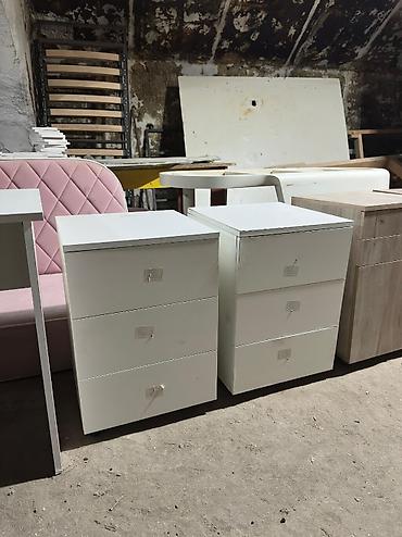 - Tumba cütlükləri (ağ): Hər biri 3 çekmecədən ibarət, kompakt ölçülü. Yataq otağında çarpayı yanı üçün funksional həll.