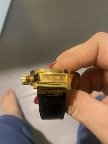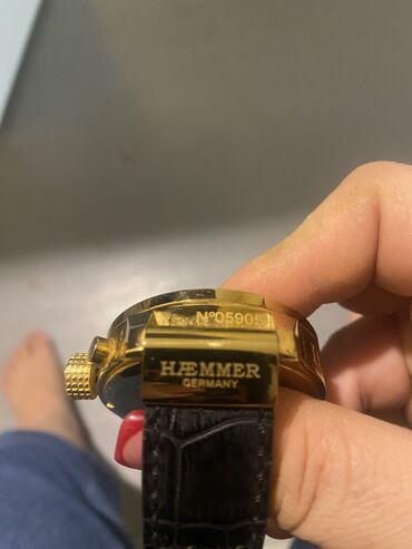 - Kəmər: Qara dərili (krokodil naxışlı), qızılı rəngli tokada “HÆMMER GERMANY” yazısı
