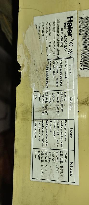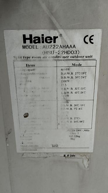 Kondisioner Haier, İşlənmiş, 70-80 kv. m, Split sistem