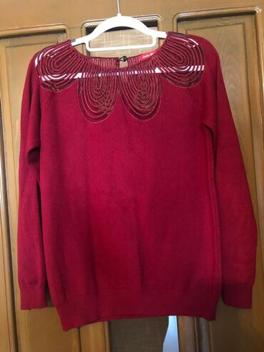 Qırmızı qadın sviteri - Rəng: dərin tünd qırmızı (bor-do tonları) -