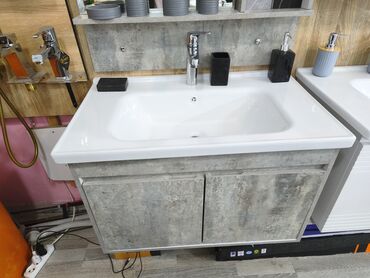 Dəstə fotoşəkildə görünən lavabo və şkaf daxildir. Kran və dispenser kimi aksesuarlar vizual məqsədlidir.