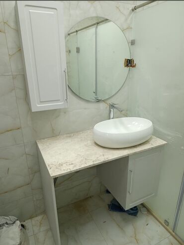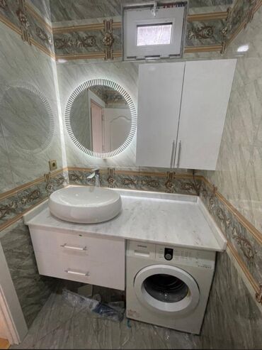 Hamam üçün quraşdırılan lavabo-masa və şkaf dəsti
