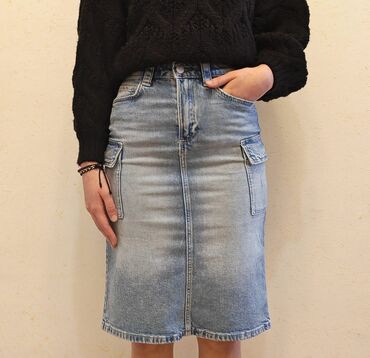 Удобная и функциональная джинсовая юбка с карго-образными деталями для повседневной носки. Модель подходит как для спортивных, так и для повседневных образов.