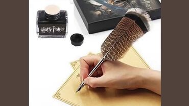 - Mürəkkəb şüşəsi: “The Feather Pen – ink” etiketi ilə, qapaqlı kvadrat şüşə. Qələm ucu birbaşa şüşəyə batırılaraq istifadə olunur.