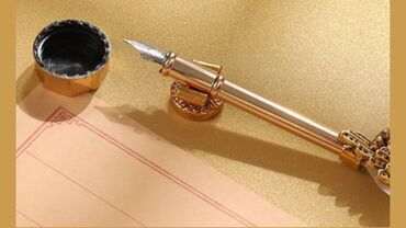 - Klassik batırma sistemi ilə yazan lələk qələm: metal gövdə, incə uclu mürəkkəb ucu, dəyişdirilə bilən nəb (uç). Bir batırmada təxminən 5–8 simvol yaza bilir.