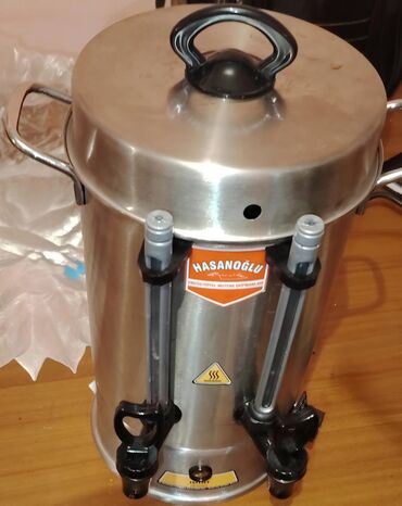 Brend: Hasanoğlu – Endüstriyel Mutfak Ekipmanları. Elektriklə işləyən, böyük həcmli, praktik və gigiyenik çay-samovar aparatıdır.