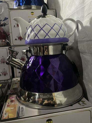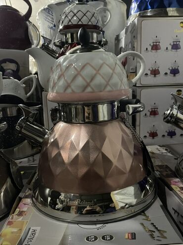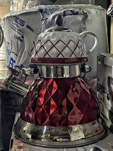 - Yuxarı hissə: ağ porselen dəmlik, naxışlı (romb xəttli) dekor, qapaqlı və rahat qulplu.
