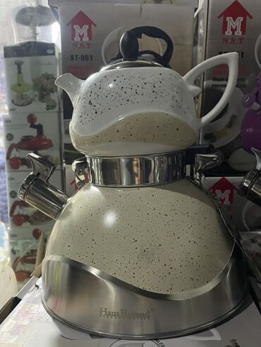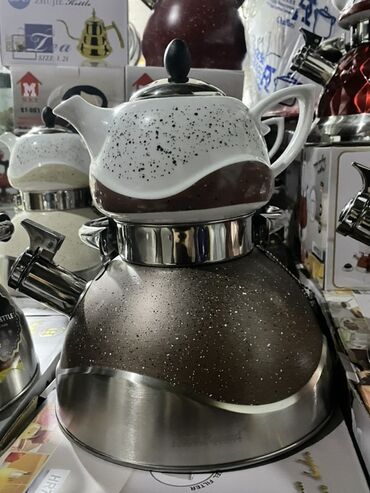 - 2 hissəli: aşağıda su üçün metal çaydan (ketl), yuxarıda porselen dəmlik.
