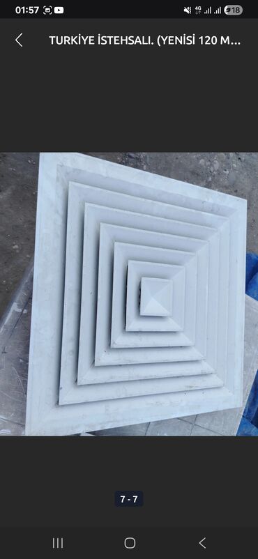 Bu hava ventili qapağı, havalandırma sistemlərində istifadə üçün nəzərdə tutulmuşdur. Ağ rəngdə və kvadrat formalı dizaynı ilə fərqlənir. Üzərində pilləli, mərkəzə doğru daralan konus formalı çıxıntılar mövcuddur. Bu dizayn hava axınının effektiv şəkildə paylanmasına kömək edir. Düzgün hava dövranı təmin etmək üçün əlverişli bir həll təklif edir.