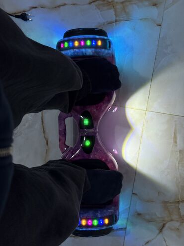 Deməy olar təzədi sürülmüş evdə qalıb Hoverboard/gyroskuter təkərlər, ikiqat platforma ilə. - Korpus: qara, rəngli naqışlı. - Sürüşməyə qarşı rezin ayaq platformaları. - LED işıqlar panel hissəsin...