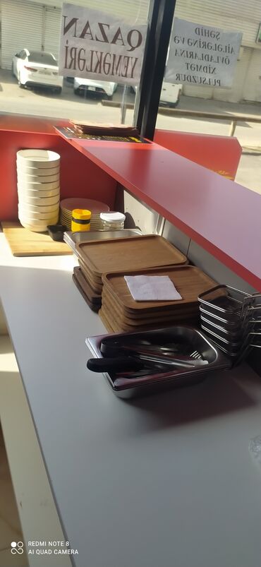 Sürətli iaşə, dönər, burger, sendviç, desert və isti içkilər konsepti üçün lazım olan əsas avadanlıqlar və mebellər bir yerdə. Hazır interyer və mətbəx düzümü ilə dərhal işə uyğun.