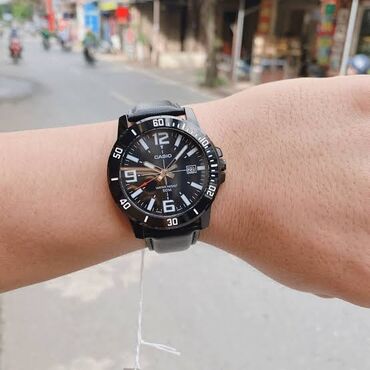 Casio kişi qol saatı - Klassik analoq göstəricilər: qara siferblat, iri ağ rəqəmlər (1–12), nazik saat/dəqiqə/sekund əqrəbləri - Tarix pəncərəsi: saat 3 mövqeyində - Suya davamlılıq: Water Resist ...