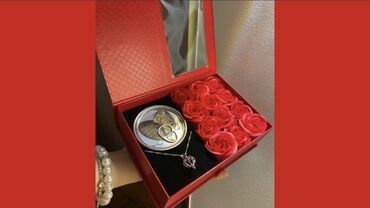 Hədiyyə qutusu seti – gül kompozisiyası və aksesuarla - Premium dəri fakturalı, maqnit qapaqlı hədiyyə qutusu; üst qapaqda şəffaf pəncərə. - İçlik: dekorativ qızılgül dəstəsi (seçimlər: qırmızı və...