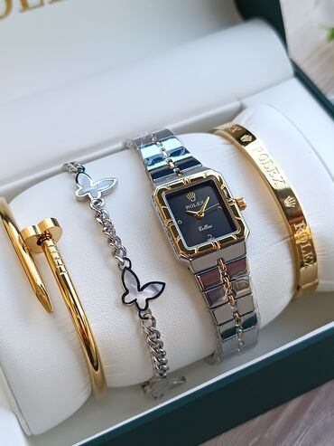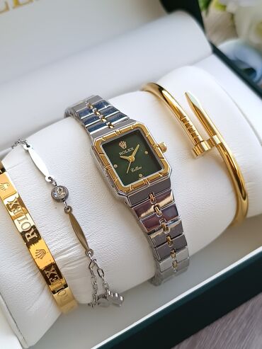 *Hədiyyəlik dəstlər* ▪️Qadın qol saatı seti ▪️”Rolex” markası ▪️3 qolbağ + saat + qutu ▪️Kvars (Batereka) ▪️Rəngi getmir