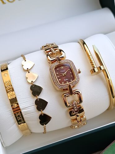 *Hədiyyəlik dəstlər* ▪️Qadın qol saatı seti ▪️”Rolex” markası ▪️3 qolbağ + saat + qutu ▪️Kvars (Batereka) ▪️Rəngi getmir