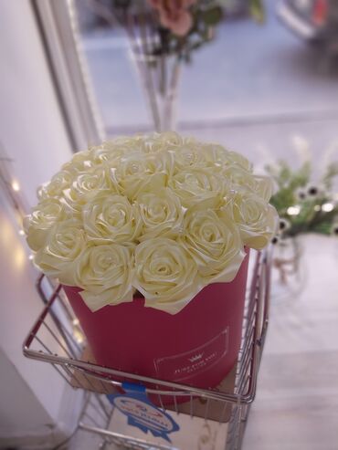 - Ölçü: silindrik qutu hündürliyi və diametri orta ölçülüdür (şəkildə göstərildiyi kimidir), güllər qutunu tam doldurur