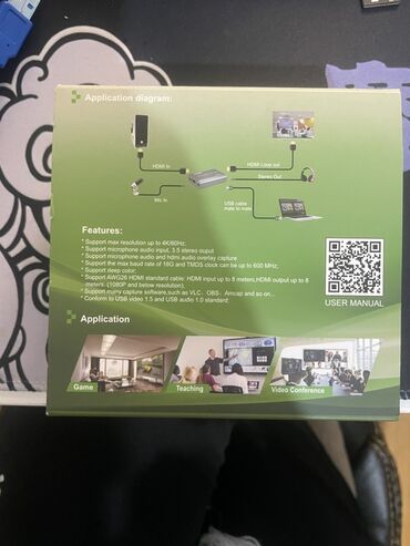 - Tətbiqlər: oyun yayımı, dərs/şəraitdə təqdimat, video-konfrans