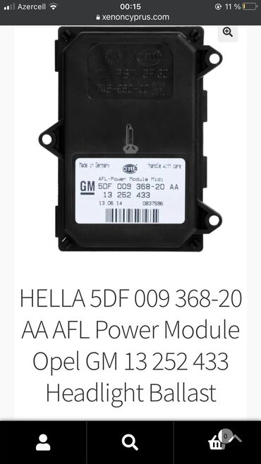 - Uyğunluq: Opel/GM qrupunun AFL sistemli faraları ilə istifadə üçün (etiketdə GM qeyd olunub)