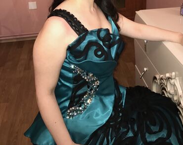 Qadın paltarı – tünd göy rəng, krujeva üstlük və atlas içlikli. Xüsusiyyətlər: - Markası: AngelEye (etiketdə göstərilir), ölçü: 42 - Model: qolsuz, dairəvi yaxalı - Material: üst hissə krujeva, al...