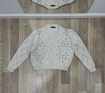 - Qadın sviteri - Rəng: tünd çəhrayı/füşya - Dizayn: ön hissədə vertikal burgulu toxunuş detallı, drop-omuz kəsimi, uzun qollar, bel və qollarda rezinli bitiş - Yaxa: yarım-balaca boğaz (stand-up) ...