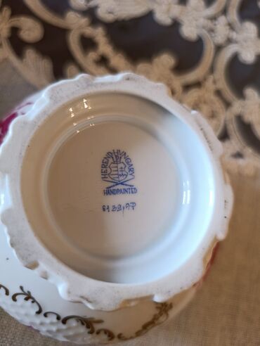 Məmulat: Dekorativ şirniyyat/qab dəsti Tərkib: - 3 ədəd kiçik boşqab – tünd lacivərti fon, ortada qızılı güllü naxış, ağ kənarlı və açma naxışlı rim - 1 ədəd böyük servis boşqabı – tünd lacivərti ...