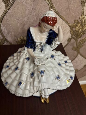 Kitab oxuyan xanım fiqurunu təsvir edən zərif farfor heykəlcik satılır.