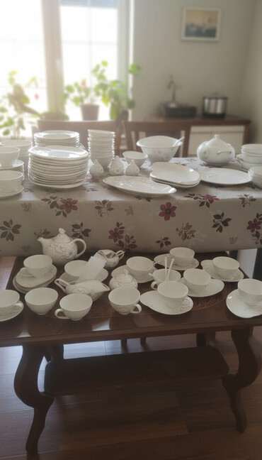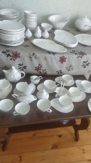 1 ədəd sup qabı; 1 ədəd iri oval boşqab; 1 ədəd orta və 1 ədəd kiçik boşqab; 2 ədəd iri dərin plov qabı; 1 ədəd iri plov boşqabı; 11 ədəd iri boşqab; 10 ədəd orta boşqab; 4 ədəd kiçik boşqab; 12 əd...