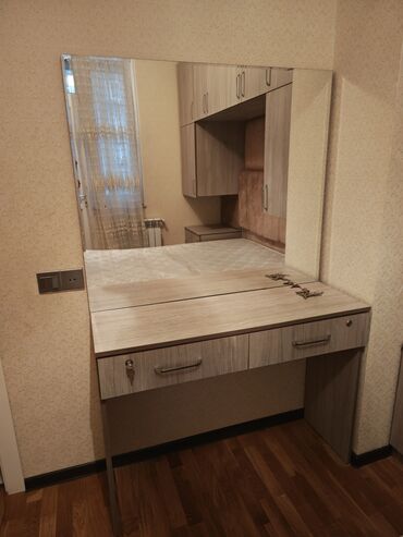 iş masası – geniş stolüstü, iki çekmece, biri kilidli; böyük güzgü ilə
