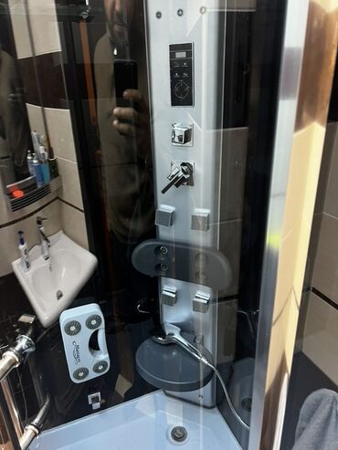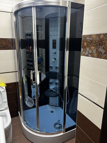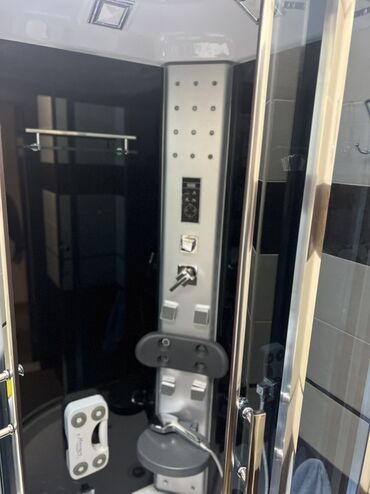 - Korpus: xrom profil, tünd şüşə panellər, hündür dayanıqlı vanna paleti