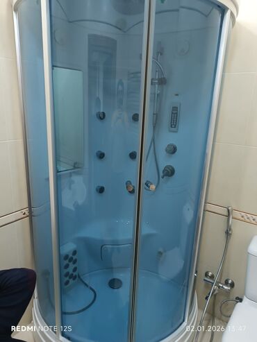 Duş kabini – şüşə və metal karkas - Forma: kvadrat, sürüşkən qapılı. - Karkas: mat qara/alüminium profilli, möhkəm bərkidicilər. - Şüşə: şəffaf temperli şüşə panellər, qalın və təhlükəsiz. - Qapı:...