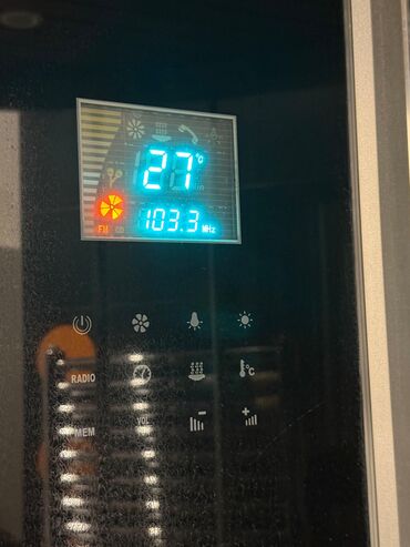 - Daxili idarəetmə paneli: rəqəmsal displey (temperatur göstəricisi °C), FM radio, yaddaş və səs səviyyəsi düymələri