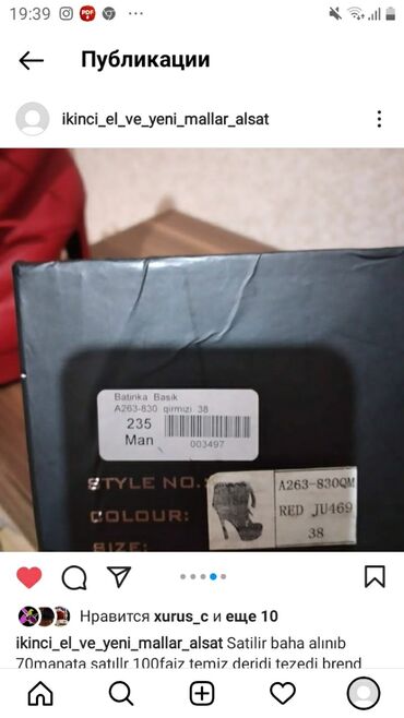 Ölçü: 37.5, rəng - Qırmızı, Yeni