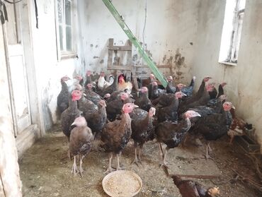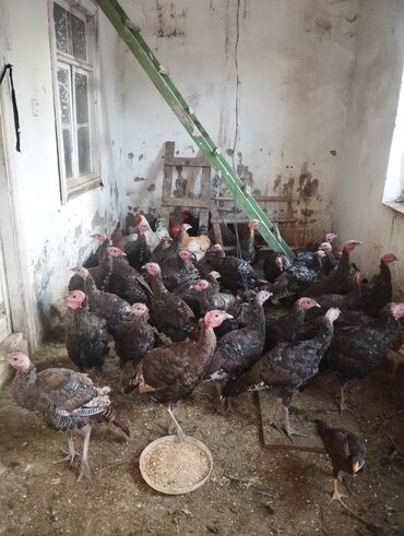 - Şəkillərdə iri, qara-qəhvəyi lələklərə və çəhrayı başlığa malik hind quşlarından ibarət böyük sürü göstərilir.