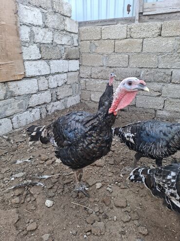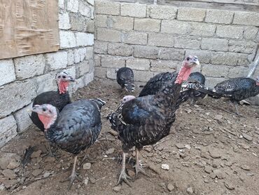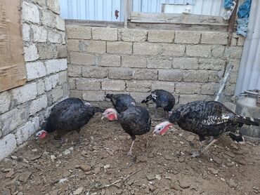 - Növ: Qara rəngli, naxışlı lələklərə malik ev hinduşkaları (erkək və dişi fərdlər görünür)