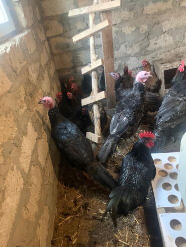 - Açıq çəhrayı başlı, qara lələkləri olan gənc hinduşkalar