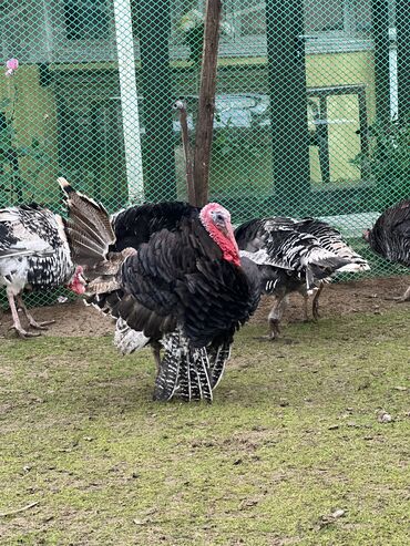 Şəkildə gördüyünüz kanada cinsli Hinduşkaların yumurtaları Satılır.Gümüşü/boz rəngli 3 dişi hinduşkalar və bir ədəd qəhvəyi-rəngli erkək hinduşka.Həyət şəraitində, açıq yerdə saxlanılır, dən və üyü...