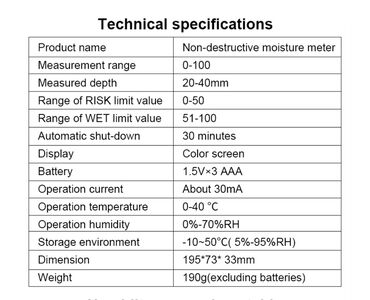 Rütubət siqnalı funksiyası: Ölçülmüş dəyər 0-100 arasındadır və müxtəlif materialın həyəcan siqnalı kritik dəyəri təyin edilə bilər.