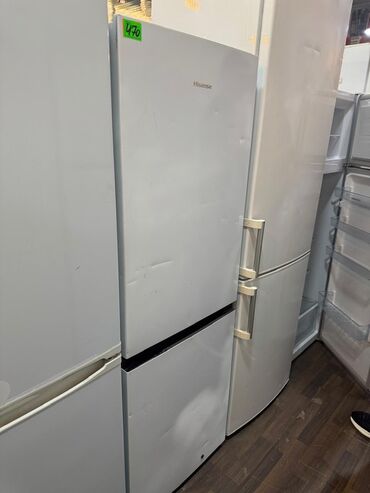 İç quruluşu gündəlik istifadə üçün funksionaldır: içmə suyu və butulkalar üçün qapı rəfləri, məhsulları ayırmaq üçün çekmecələr, asan təmizlənən şüşə rəf. Şəhər mənzilləri və kiçik ailələr üçün praktik ölçü və tutum. Üst paneldə markalanma “Hisense”, iç hissədə əlavə olaraq Stinol panelli modul görünür. Üst sol küncdə 470 yazılı etiket mövcuddur.
