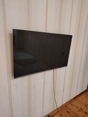 Hisense divar televizoru - Ekran: təxminən 40–43 düym diaqonallı, düz ekran - Montaj: divara bərkidilmiş, nazik çərçivə dizaynı - Görüntü: Full HD keyfiyyətinə uyğun parlaq və kontrastlı təsvir üç...