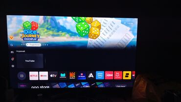 Multimediya üçün hazır smart TV: film və serial platformaları, onlayn video, oyunlar və tətbiqlər bir ekranda. Ekran parlaq, rənglər doymuş, geniş görüntü rejimləri mövcuddur. Wi‑Fi vasitəsilə asan qoşulma və App Store-dan əlavə proqram yükləmə imkanı.