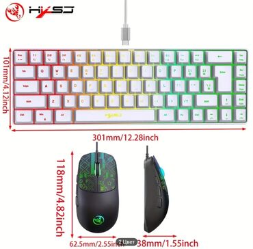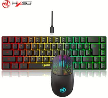 - Siçan: çoxrəngli RGB işıqlandırma və dekorativ naxışlı üst panel, iki yan düymə, funksional təkər. Oyun və gündəlik istifadə üçün dəqiq idarəetmə.