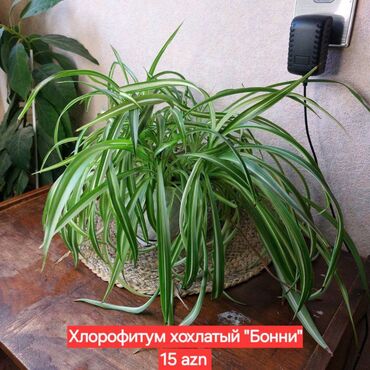 Xlorofitum (Spider Plant). Perlitli, kokos torflu, drenajli , osmokotlu və hava keçirən substratda əkilib. Təmiz və sağlam bitkidir.