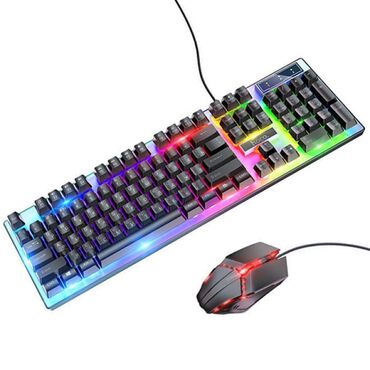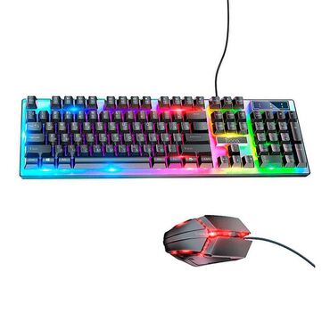Dəst: 1 ədəd RGB klaviatura + 1 ədəd LED işıqlı simli oyun siçanı.